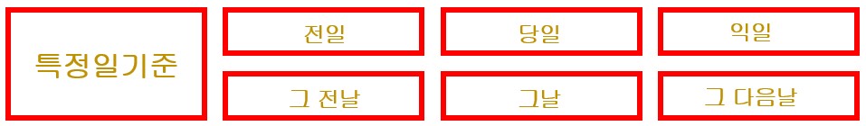 특정일을 기준으로하는 전일, 당일, 익일은 기간을 표현할 때 주로 쓰이며 일상생활에 자주 사용됩니다.