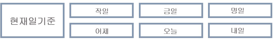 현재일을 기준으로 어제, 오늘, 내일을 표현하는 방법도 알아보겠습니다.